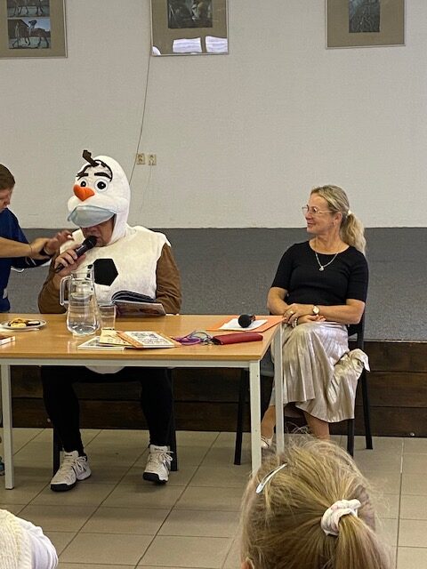 Navštívil nás pán Marián Labuda ml. – herec, ktorý stvárnil veľa zaujímavých hereckých postáv. Všetci sme spoznali snehuliaka Olafa zo známej rozprávky Snehové kráľovstvo. Ďakujeme za zaujímavé rozprávanie a pútavé čítanie.