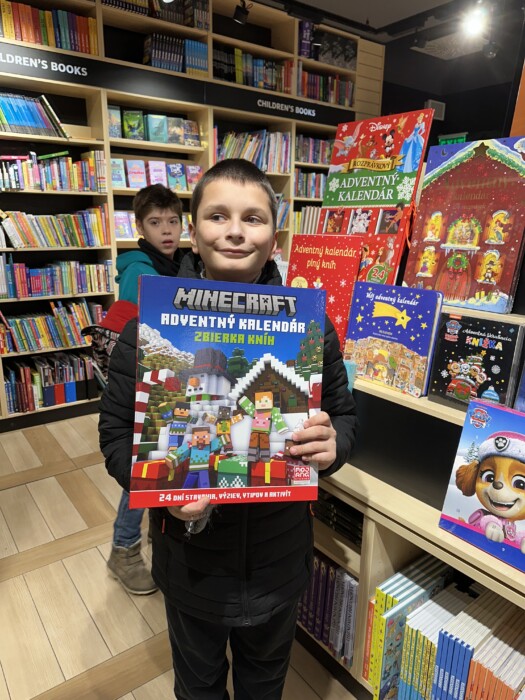 V Martinuse sme si dopriali horúcu čokoládu so šľahačkou a chalani si vybrali svoje obľúbené knihy o vesmíre a futbale.