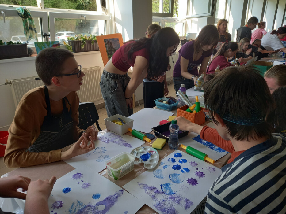Dňa 17. apríla nám ZUŠ na Vrbenského ulici v Rači pripravila umelecké dopoludnie. Z jedálne sa ozývali tóny harmoniky, tanca a veselý šum pri maľovaní a tvorení. Pod vedením pani učiteliek výtvarnej výchovy Kariny a Danky sme tvorili na tému „Zabudnuté príbehy nášho regiónu“ v rámci nášho projektu – Neznámi maľujú diela známych. Ďakujeme za krásny umelecký zážitok učiteľom a žiakom ZUŠ a opäť niekedy dovidenia.
